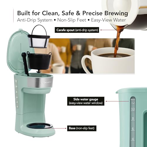 - SAFETY FEATURES – Equipped with advanced anti-drip technology, preventing any drips or leaks during the brewing process with non-slip feet to provide a secure and stable grip on any surface. In addition, it has an easy-to-view water meter that accurately measures the water level to make sure the right amount of water is used for each brew. Enjoy a clean and hassle-free brewing experience.