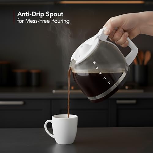 - Borosilicate Glass Carafe – The dishwasher safe coffee maker is made of high-quality, non-porous glass, ensuring exceptional durability and to withstand daily use. It won't absorb odors, while its excellent heat resistance will keep your coffee hot for a longer period. Constructed with a wide grip handle and non-drip spout for smooth and easy pouring.
