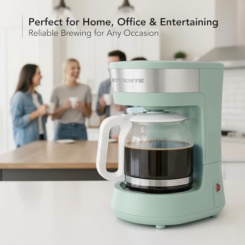 OVENTE – 12-cup drip coffee maker with borosilicate glass carafe, one-touch operation machine, anti-drip system, reusable filter and clear view water meter, ideal for the