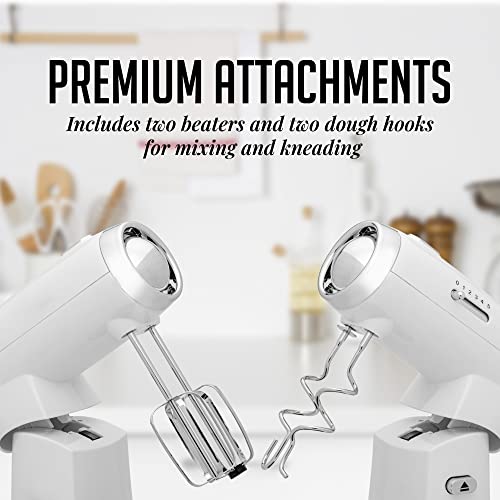 - INCLUDES EVERYTHING YOU NEED – Comes with a 3.5-quart stainless steel bowl, ideal for new bakers, small families or couples. It also includes two types of attachments: two whisks for aerating your batters and two dough hooks for kneading dough, providing everything you need to effortlessly create your favorite recipes.