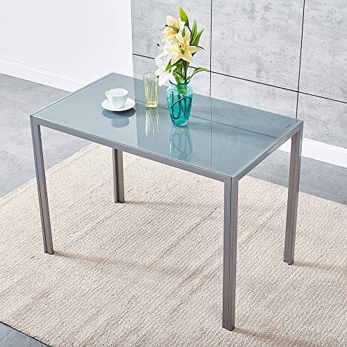Panana Dining Table and Chairs, Set of 4. Tempered Glass Dining Table with 4 PU Leather Dining Chairs. Dining Room Table Sets for Home and Kitchen Furniture (Grey, 105x60x75cm)