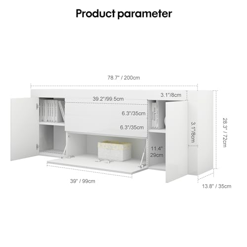 Be the first to review “Panana Living Room Large Sideboard Cabinet High Gloss Front and Top Chest of Drawers 2 Door 2 Drawer 2 Flap Storage Cupboard W200xD35xH72cm (White)”