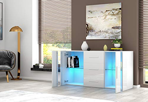 • ❤YOUR BEST CHOICE: This high gloss fronts led modern sideboard unit is an ideal choice for living room furniture. Featuring 2 display compartments with led lighting, 2 door & 3 big drawer which can store a lot of stuff.