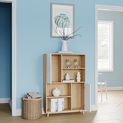 Panana Sideboard Display Cabinet with Doors Shelf Wooden Cupboard Living Room Storage Bookcase (2 Doors 4 Shelves)