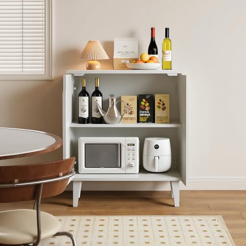 Panana White Coffee Bar Cabinet, Farmhouse Kitchen Sideboard Buffet Storage Cabinet White Accent Sideboard Buffet Cabinet for Kitchen, Dining Room, Living Room, Hallway