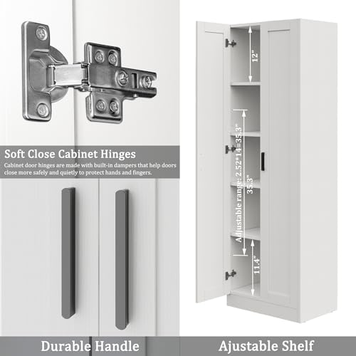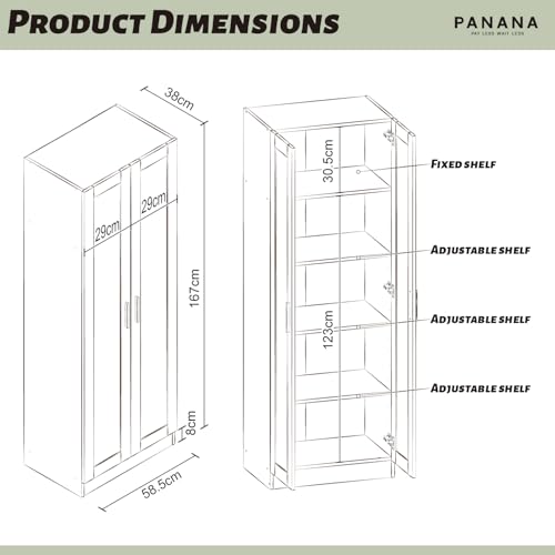 Panana Wooden Storage Cabinet, 2 Doors Sideboard Organizer Unit Tall Kitchen Cupboard with Adjustable Shelves for Living Room, Bedroom, Kitchen and Hallway (White)