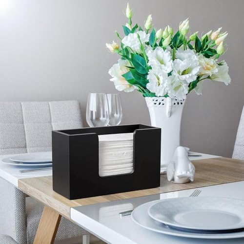 Paper Towel Dispenser Countertop, Wooden Bathroom Paper Towel Holder, Black Napkin Holder for Kitchen, Trifold Paper Hand Towel Dispenser for Bathroom Toilet (Black)