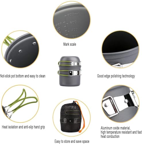 Pardarsey Camping Cookware Mess Kit 1-2 Person / 2-3 Person,Folding Knife and Fork, Portable Pan and Pan Set, Hiking for Picnic and Camping
