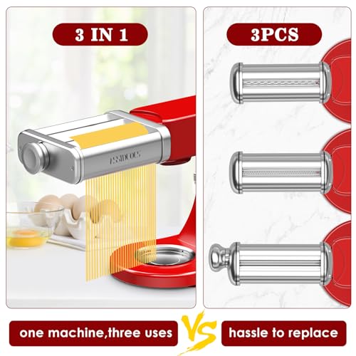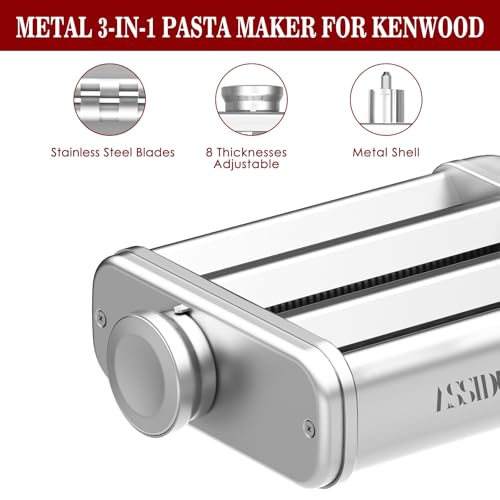- GREAT GIFT IDEA: a 3-in-1 stainless steel pasta attachment for the Kenwood pasta attachment is not only suitable for a variety of recipes, but is also a gift of care and taste. Whether for a holiday party, birthday party or everyday gathering, it will bring endless flavors and surprises to your friends and family. Whether you are a beginner chef or a master chef, this ideal gift will become an indispensable treasure in your kitchen.