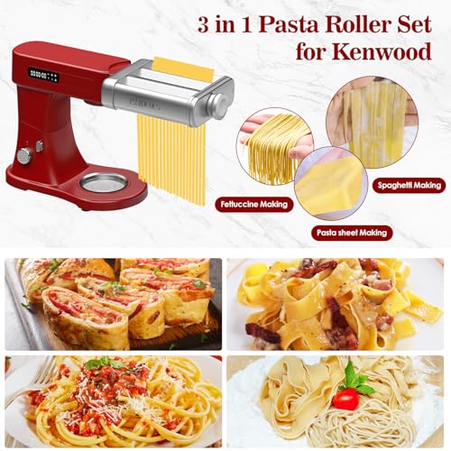 - REAL 3-IN-1 FUNCTIONALITY: Improve your pasta making with ease. Specially designed for Kenwood accessories and fits Ken wood (KMX) Kmix food processor models and combines a pasta roller, fettuccine cutter and spaghetti cutter in one. (Note: Not compatible with Kenwood Titanium Chef Patissier XL / Titanium Chef Baker XL / Titanium Chef Baker / Chef XL Titanium / Chef XL.)