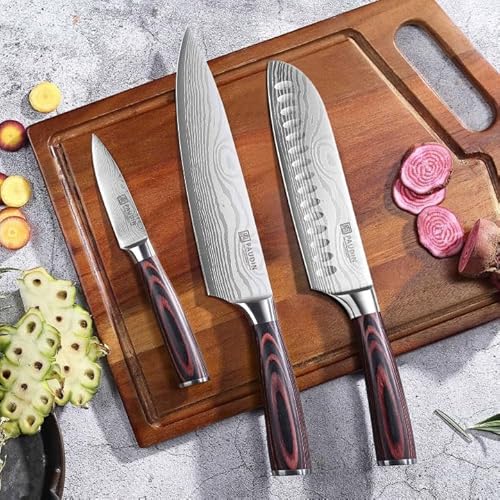 - ELEGANT DESIGN: Featuring premium wood handles and an artfully etched pattern (NOT Damascus), this knives set adds sophistication and elegance to the kitchen and is a must-have cooking tool for the discerning chef