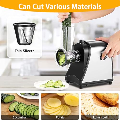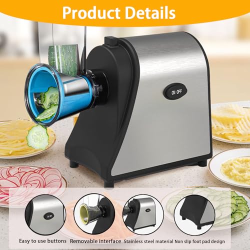 pedenencelia Electric Cheese Grater,5 In 1 Electric Vegetable Slicer,With 5 Blades,For Zucchini,Cheese,Vegetables And Smoothie,One Touch Easy Control,With Four Non Slip Foot Pads