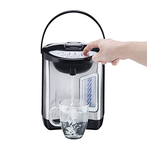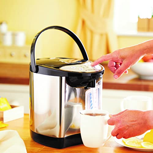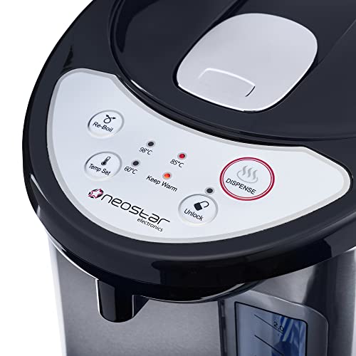 - SAFE TO USE: Whilst the casing can get warm it's never too hot to touch. Separate unlock button for extra precaution so you can dispense without scalding and an auto shut off function so it doesn't boil dry.