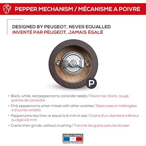 - PEUGEOT PEPPER GRINDER: An iconic Peugeot model, the Bistro mill combines functionality, robustness, authenticity and design. It also supports environmental sustainability with its ethically crafted PEFC-certified wood sourced from French forests.
