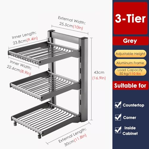 - Heavy Duty Pot Organizers : Made of aircraft-grade aluminum alloy, water and rust-resistant, it's sturdy and stable, and won't wobble or tip over during use. Each tier holds approximately 13kg/30lbs, making it a great addition to your kitchen