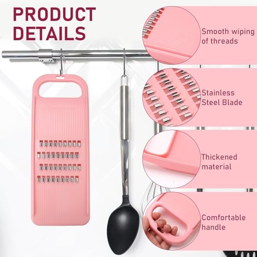 Plastic Grater for Carrot Vegetable Onion Cabbage Potato Cucumber Grater Mandoline Slicer Kitchen Food Shredder Salad Slicer Chips Cutter Strips Chopper Handheld with Stainless Steel Blades Pink