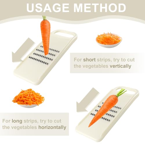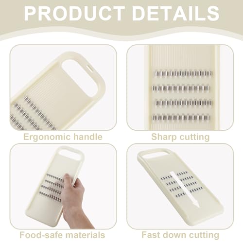- Long-lasting Stainless Steel Blades: Equipped with sharp, reinforced stainless steel blades, this vegetable strips slicer ensures long-lasting performance. The sturdy frame prevents bending during use, allowing you to cut fruits and vegetables into fine, uniform strips every time