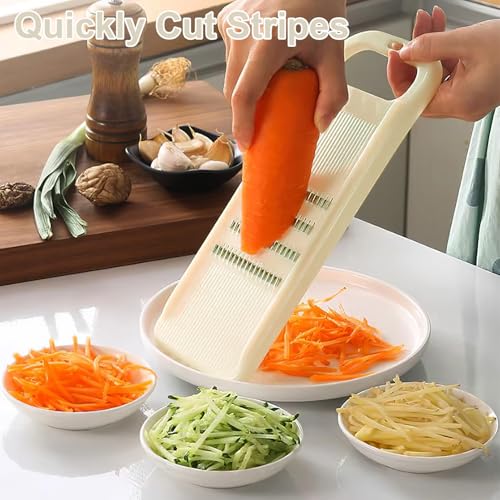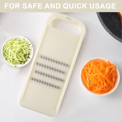 Plastic Grater for Carrot Vegetable Onion Cabbage Potato Cucumber Grater Mandoline Slicer Kitchen Food Shredder Salad Slicer Chips Cutter Strips Chopper Handheld with Stainless Steel Blades White