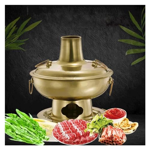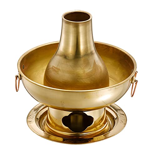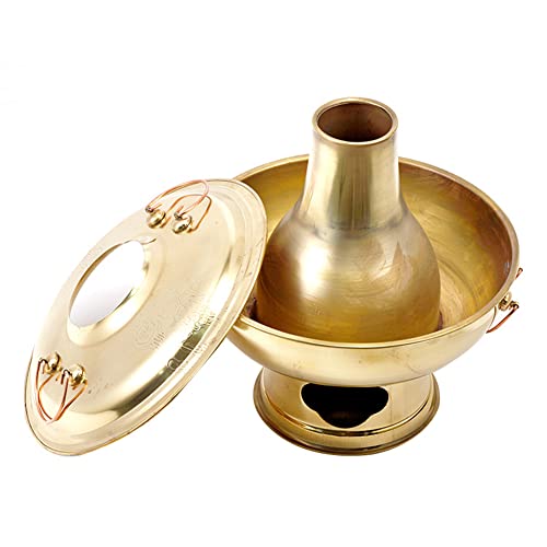 Pot Vintage Shabu,Chinese Copper Hot Pot, Chinese Shabu Shabu with Chimney Vintage Shabu Hotpot Cooker Pan Charcoal Stove Cooking Cookware for Home Restaurant Party(Brass, 7 Sizes)(30cm)
