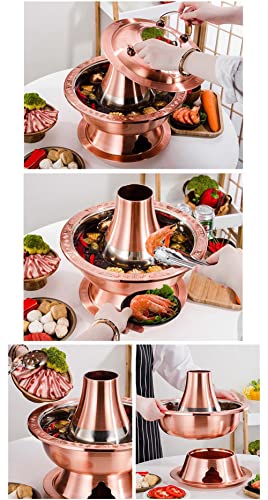 Pot Vintage Shabu,Chinese Copper Hot Pot, Shabu Shabu Vintage with Chimney Stainless Steel Hot Pot Cooker Chinese Kitchen Soup Cooking Cookware for 1-10 People Home Party Restaurant(Silver,2