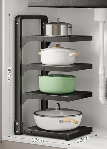 - Maximise your kitchen space with this compact pot shelf designed to seamlessly fit into under-cabinet corners. Crafted from premium iron, it delivers outstanding stability and long-lasting durability.