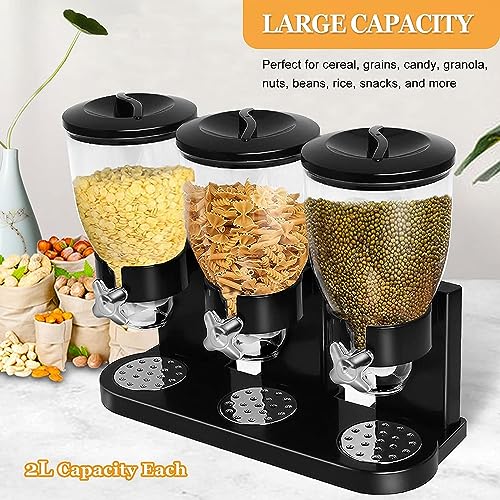 Poweka Triple Canister Cereal Dispenser, Plastic Dry Food Cereal Dispenser Container Machine Storage Bottles for Home and Kitchen(Black)