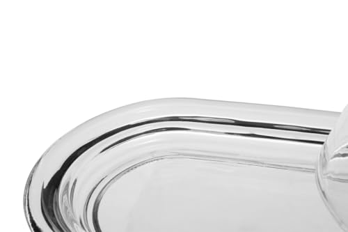 - Keep your butter fresh and in perfect shape with our Clear Glass Butter Dish, featuring sturdy glass construction, a matching clear glass lid, and a classic oval design.