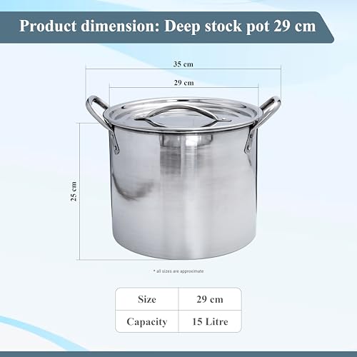 Buckingham Stock Pot with Stainless Steel Lid Premium Quality Multi Purpose Cooking Pot for Cooking Soups Stews & Brew Boiling 15 Litre