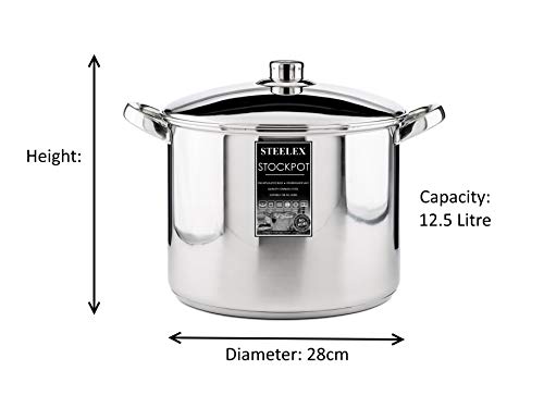 Stainless Steel Induction Stock Pot with Lid Large Deep Casserole Cooking Stockpot Mirror Polished Finish Soup Stew Home Brew Pot (28cm – 12.5 Litre)
