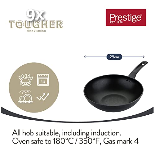 Prestige 9 x Tougher Wok Non Stick 29cm – Induction Wok with Scratch Resistant Non Stick, Stay Cool Easy Grip Handles, Oven & Dishwasher Safe Stir Fry Pan, Dark Grey