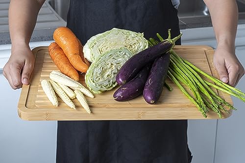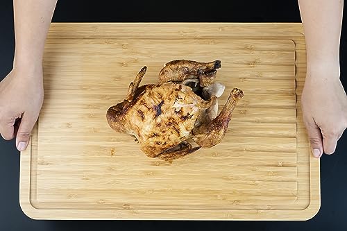 Premium Organic Bamboo Wooden Carving and Chopping Board by Harcas. Extra Large Size 44cm x 30cm x 2cm. Ideal for Carving Meat, Cutting Vegetables, Serving Tapas and Cheese