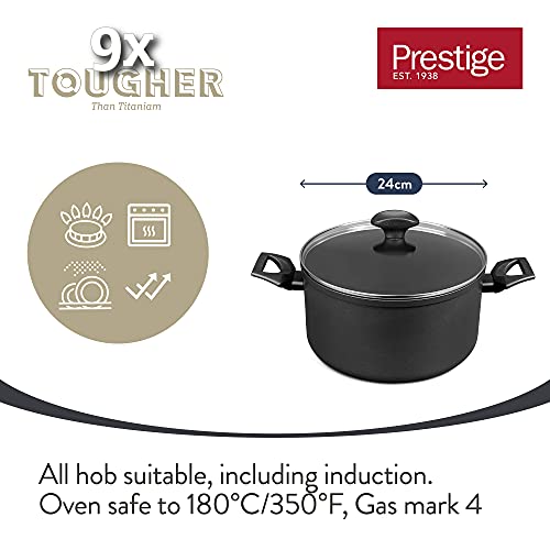 Prestige Tougher Stock Pot with Lid – Induction Stock Pot with Scratch Resistant Non Stick, Stay Cool Easy Grip Handles,24cm, Stockpot