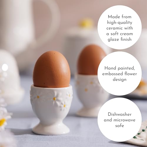 Price & Kensington Daisy Set of 2 Egg Cups | Ceramic Egg Holders with Embossed Daisy Design | Dishwasher & Microwave Safe