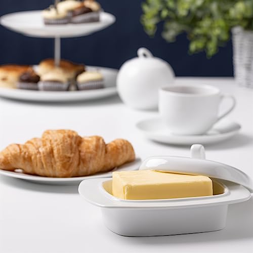 - TAKING CARE | Made from durable, vitrified super white porcelain, this butter dish is both microwave and dishwasher safe.