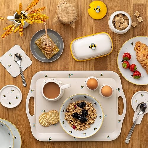 BUTTER DISH | Perfect for everyday use, the Price & Kensington Sweet Bee butter dish is ideal for keeping butter fresh. Made from quality ceramic, the butter dish is decorated with cute flying bumble bees and decorative spots.