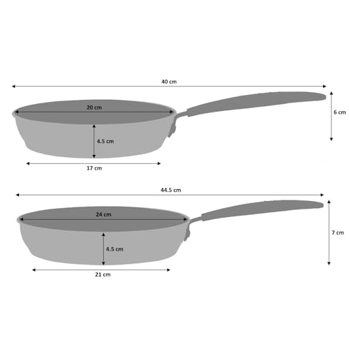 - DURABLE CONSTRUCTION: Built from 18/10 stainless steel for superb heat distribution and durability. Includes 20, 24 and 28cm frying pans