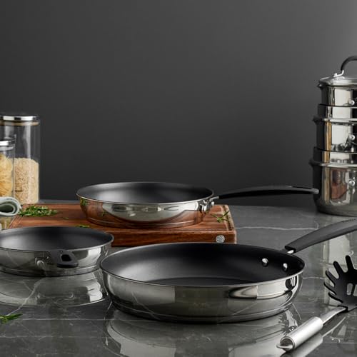 ProCook Gourmet Stainless Steel Frying Pan Set with Stay Cool Handles Non Stick Induction Safe Dishwasher Safe Cooking Pots – 3 Piece, 20/24/28 cm