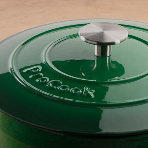 ProCook Graduated Cast Iron Dutch Oven Set – 2 Piece, 20cm/24cm, Casserole Dishes with Lid – Green, Durable Induction Compatible Cookware