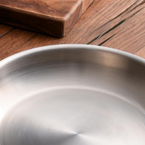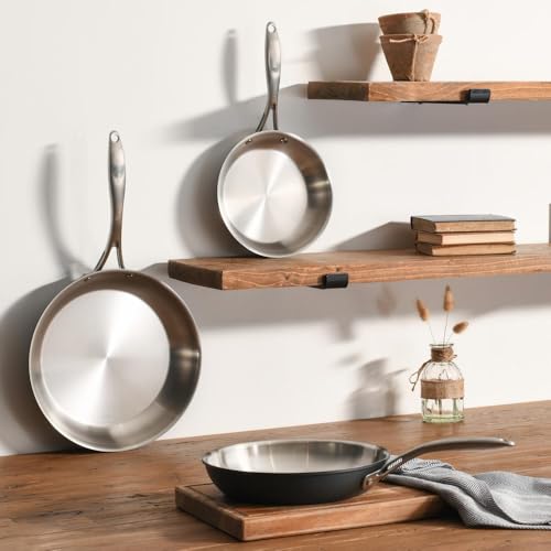 - UNCOATED STAINLESS STEEL INTERIOR: Featuring an uncoated stainless steel surface, these pans provide excellent durability and resilience. Ideal for searing, browning and everyday frying, the interior withstands high heat without damage while locking in food’s natural flavours.