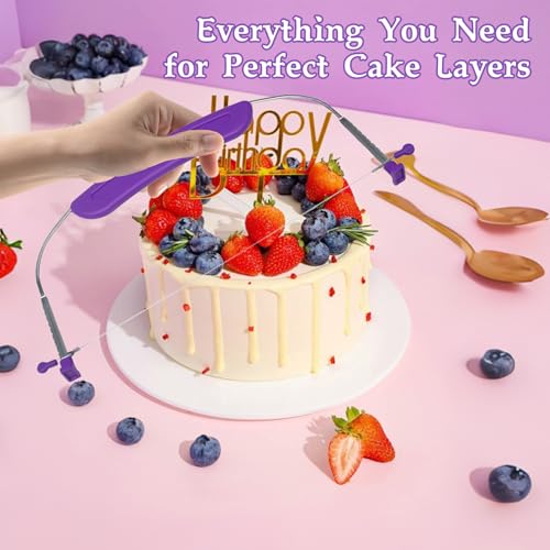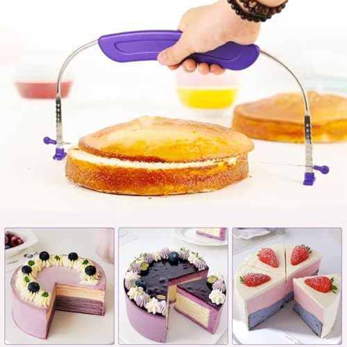 Professional Cake Leveller Cutter 10 Inch Adjustable Stainless Steel Wire Cake Slicer Cutter for Leveling & Slicing Kitchen Baking Tools for Birthday Layer (27CM Purple)