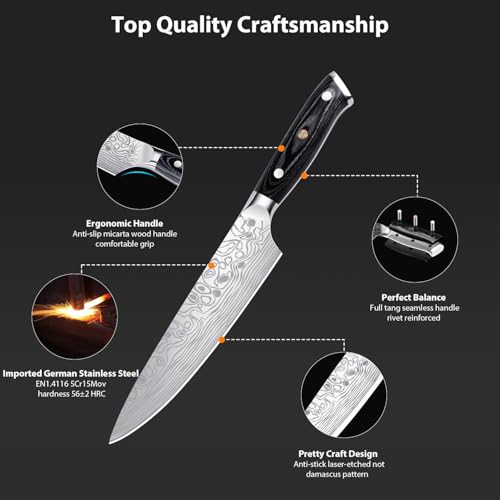 8 inch Ultra Sharp Chef Knife, Professional Kitchen Knives Set, High Carbon German Stainless Steel Carving Chopping Knifes Dishwasher Safe with Micarta Handle Sharpener Sheath Gifts Box for Men Women