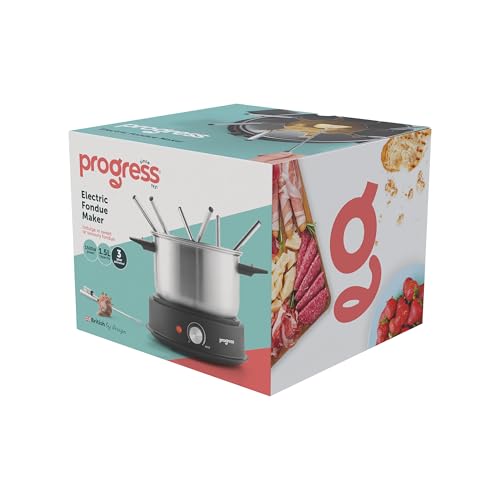 Progress Electric Fondue Maker – Comes with 8 Stainless Steel Forks and Detachable 20cm Pot, Perfect for Savoury or Sweet, 1.5 Litre Capacity, Temperature Control