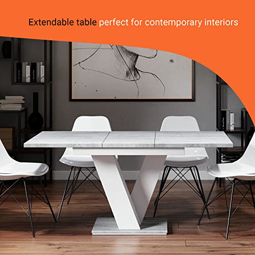 Prospero Meble MASIV Extendable Dining Table, White/Stone, 120/160 x 80 cm | Modern Folding Table for Kitchen, or Living Room | Scratch-Resistant Surface | Space-Saving Furniture for Small Areas