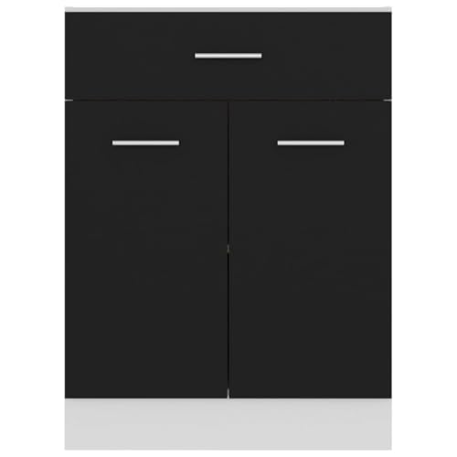 QJBSAVVA Lyon Engineered-Wood Kitchen Cabinet 60x46x81.5 cm Black Drawer Bottom Unit with Doors & Shelves Modern Pantry Storage for Kitchen Bathroom and Living Room
