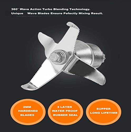 - [Multi Function Blender]: Hardened Japan stainless steel six wave action blades allows for greater product versatility, speed and timer adjustable.