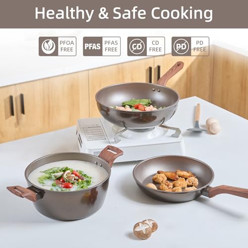 - [DIFFERENT COOKING SCENARIOS] : Unleash your culinary creativity with this stylish non stick pots and pan set by RATWIA. From sautéing and frying to simmering and stewing, this set is perfect for whipping up all kinds of recipes with ease