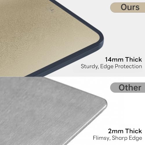 • 【Extra Thick Rock-Solid Core】A 14 mm body with forged edges handles up to 10 kg of chopping force without warping—80 % sturdier than thin metal boards yet gentle on knife edges. Built to last, meal after meal.