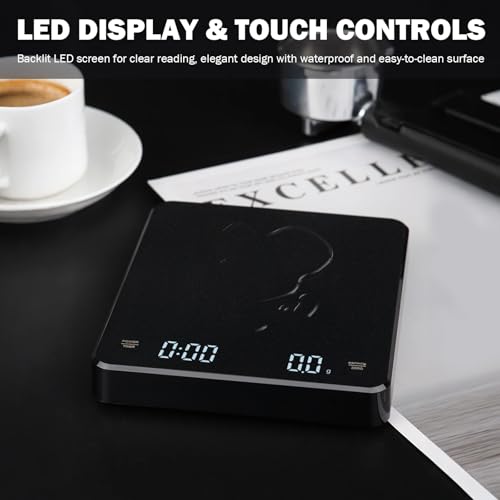 - Premium Barista-Grade Build: Designed as the ultimate barista scales, it’s crafted with scratch-resistant borosilicate glass and a hidden LED display. Includes a heat-resistant silicone mat, making it a must-have coffee scale for espresso enthusiasts who demand durability and style