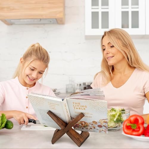- 【High Quality Materials】The wooden book stands is made of high quality natural solid wood The cookbook holder has been finely sanded to obtain a smooth edge and a pleasant feel The wood is carbonised to show a beautiful wood grain.