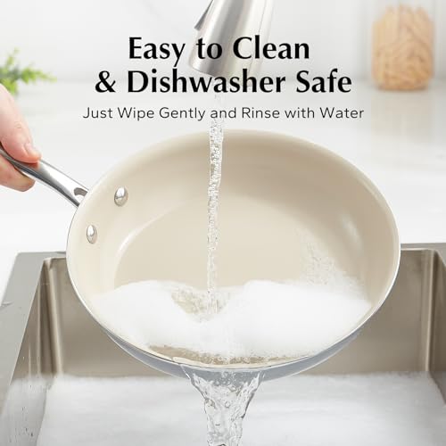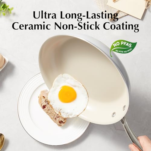 • CERAMIC NON-STICK COATING: Our innovative cooking surface undergoes a triple-layer ceramic coating process, durable and totally safe. The nonstick frying pans excels in delivering outstanding nonstick performance, enabling you to prepare your favorite dishes with minimal oil or butter usage